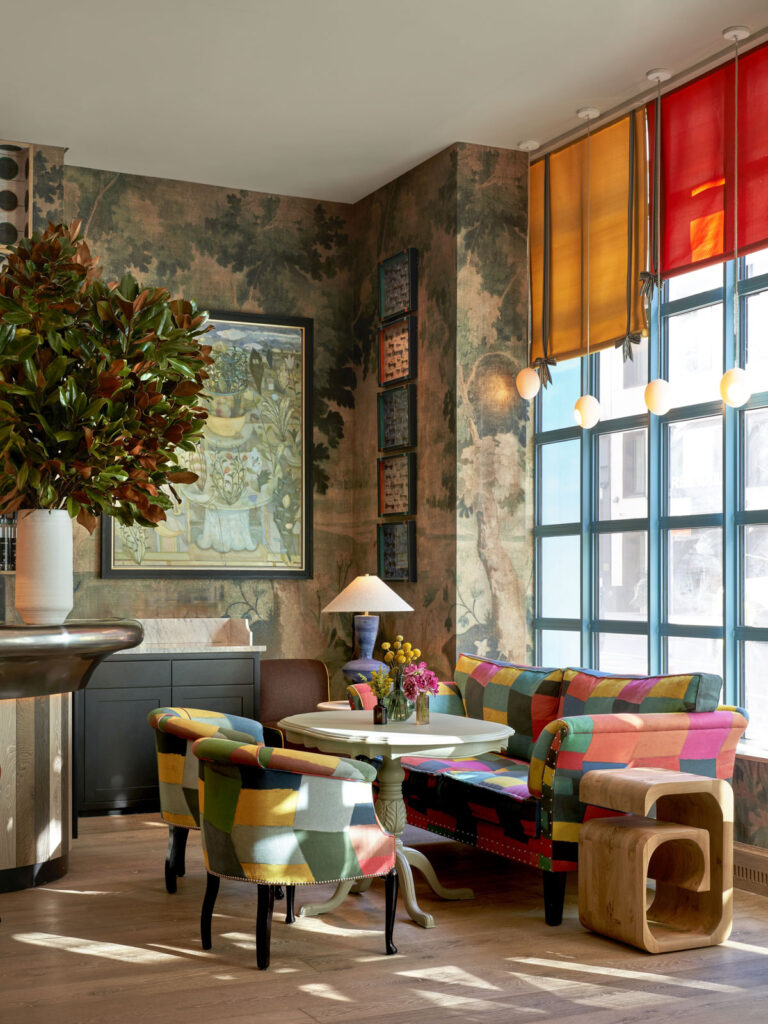 Yet, without sounding too much like a Pollyanna, the woes of my soggy shoes and limp linen pants miraculously disappeared as we entered the lobby of the Warren Street Hotel in the city’s TriBeCa neighborhood. The newest Firmdale property in the city, it’s the third to open in New York, joining The Crosby and The Whitby, and reflects the same imaginative storytelling and welcoming aesthetic as the company’s eight hotels in London.